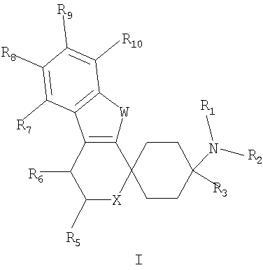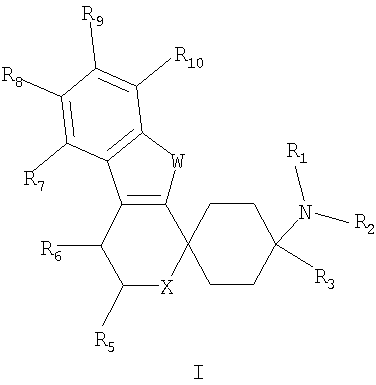 12. Спироциклические производные циклогексана по одному из пп.1-6, 9, 10, отличающиеся тем, что W обозначает NR4, где R4 представляет собой Н, СН3, С2Н5, ацетил, фенил, бензил или COR12, а X обозначает О, NH или NCOR12.