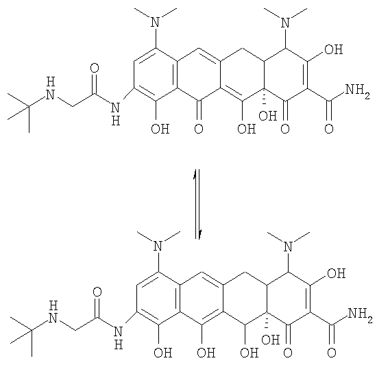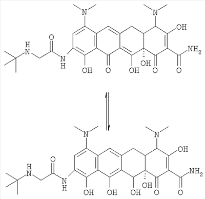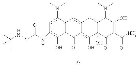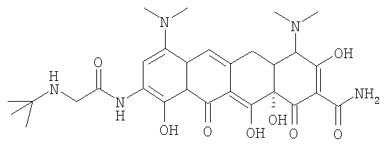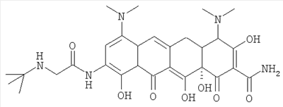 Тигециклин представляет собой глицилциклин, относится к семейству тетрациклинов и несет замещения в позициях 7 и 9. Далее тигециклин будет обозначаться как GAR-936.