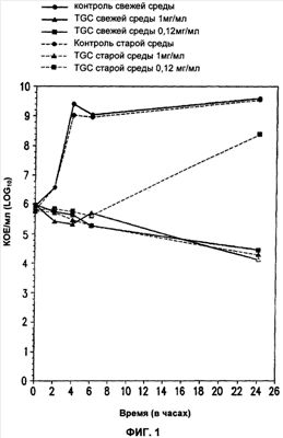На фиг.1 показана антибактериальная активность тигециклина (Tigecycline, TGC) на свежих и старых бульонах Мюллера-Хинтон в отношении E.coli АТСС 25922.