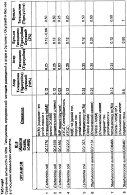 Обнаружили, что включение адъюванта в качестве восстанавливающего кислород препарата, а в частности – таких восстанавливающих кислород препаратов, как препараты, полученные из цитоплазматических мембран микроорганизмов, таких как E.coli, делает возможной стандартизацию полученных в ходе теста на чувствительность результатов организмов для контроля качества из АТСС, при проведении теста в отношении, в частности, 7- и 9-замещенных тетрациклинов. Когда указанный адъювант получают из цитоплазматических мембран микроорганизмов, таких как Е.coli, а конкретно – представляет собой Oxyrase®, в диапазоне концентраций от примерно 0.5% до примерно 10.0% (объем/объем составу среды [здесь и далее обозначается как об./об.]), предпочтительно – от примерно 1.0% до примерно 4.0% (об./об.), а наиболее предпочтительно – в концентрации примерно 2.0% (об./об.).