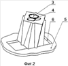 Предлагаемое к применению в новом качестве твердосплавное изделие это металлокерамическое изделие из типа ВК – композиция из твердого сплава карбида вольфрама с кобальтом. Оно, как и обычно, состоит из плотной оболочки 1 и спрессованного содержимого 2 в нем, состоящего из порошков из карбида вольфрама 3 и кобальта 4, находящегося между частицами порошка карбида вольфрама. Для высокотемпературного поглощения из воздуха газов предлагается применить изделия преимущественно многогранной формы, такие как и ранее, при использовании их в качестве режущего инструмента (см. каталог с.16-18 и с.27-28), помещенные на подложке 5 над выемками 6 в ней (см. фиг.1 или 2), ребрами 7 или вершинами граней 8 соответственно. Подложка с твердосплавными изделиями помещена в нагретую или нагреваемую печь, в которой размещены изделия, подвергаемые в дальнейшем термообработке в заданном режиме. Предлагаемое твердосплавное изделие, применяемое в качестве газопоглотителя, взято в необходимом количестве для обеспечения защиты от окисления термообрабатываемых изделий (например, серия изделий на подложке).