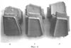 После завершения термообработки термообработанное изделие и предлагаемое режущее твердосплавное изделие – газопоглотитель извлекаются из печи. Предлагаемое изделие – газопоглотитель при этом, в зависимости от длительности газопоглощения и температуры печи, изменяет свои размеры (см. фиг.4-5). Изделие увеличивается в объеме в результате интенсивного поглощения газов в печи. В таком качестве он предложен впервые. За счет того, что твердосплавное режущее изделие имеет форму многогранника, т.е. имеет множество граней и соответственно ребер происходит интенсификация процесса газопоглощения (см. фиг.6 и 7 и табл.1 и 2). Сам эффект газопоглощения кислорода давно известен изделиями из титана, из пиролитического углерода, и других материалов. Но газопоглощение известными изделиями осуществляется тонкими поверхностными слоями, которые взаимодействуют с атмосферой печи, например при нитроцементации, азотировании или окислении в процессе термообработки в воздушной среде в печи. Слои изделия, насыщенные газом в результате взаимодействия с углеродом в течение нескольких часов, имеют толщину до 2 мм, а азотированные – до 0,72 мм (А.И.Самохин. Технология термической обработки металлов. М., «Машиностроительная лит-ра». 1962 г., с.136 и с.164). Предлагаемое твердосплавное режущее изделие в качестве газопоглотителя, в отличие от изделий из титана в виде листов, заготовок и полуфабрикатов цилиндрической формы, имеющих глубину газопоглощения кислородом на воздухе (Т=700-850°С) в пределах 0,99-0,62 мм, а в печи (Т=700-850°С) – 0,50-0,95 мм в течение 5 часов, способно осуществить поглощение кислорода за 10 мин при температуре 950°С глубиной слоя изделия в 1,0 мм. Эффект интенсивного газопоглощения кислорода твердосплавными режущими изделиями был обнаружен неожиданно, в результате длительного поиска причин поверхностного разрушения дробленых частиц твердого сплава, содержащего карбид вольфрама, спрессованного при температуре 1450°С с кобальтом в различных соотношениях (ВК8-ВК15) при контакте со связкой – расплавом на основе меди (латунь). Длительный поиск причин перехода при этом кобальта в связку и обеднение поверхности твердосплавной частицы им привел к началу исследования поведения твердосплавной частицы на воздухе, определяя степень разрушения исследуемого материала изделия. При помещении в разогретую печь при температурах 750°-1150°С с выдержками в воздушной среде в печи в течение 10-60 минут известных ранее твердосплавных изделий как режущих блоков толщиной 5-10 мм и шириной 25-40 мм с четко выраженными ребрами по краям граней, а также режущего твердосплавного изделия в виде объемного многогранника с толщиной 10 мм и шириной 25 мм с резко выраженной границей граней в местах их стыковок (ребер) и последующей выемки из печи и охлаждении на воздухе, обнаружено, что блоки значительно увеличились в объеме, так же как и многогранники. За счет такого формообразования и наличия ребер обнаружилось, что твердосплавное режущее изделие, в процессе газопоглощения и благодаря большим напряжениям в нем, разрывается по ребрам, после этого начинает интенсивно поглощать кислород воздуха с проникновением его вглубь изделия, изменяя форму всех граней отдельно (см. фиг.4-5). В зависимости от параметров изделия (чем больше граней и больше объем), тем газопоглощение проходит интенсивней и д