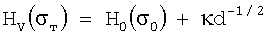 где НV – твердость; т – предел текучести; Н0 – твердость тела зерна; 0-внутреннее напряжение, препятствующее распространению пластического сдвига в теле зерна; – коэффициент пропорциональности; d – диаметр зерна.