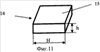 По окончании процесса пропитки в зависимости от назначения элемента удаляются все либо часть стенок формы любым известным способом: стравливанием, сошлифовыванием, точением, фрезерованием и др. Например, на фиг.11 показан режущий элемент 14 с рабочей поверхностью 15, полученный после удаления всех стенок формы. Такой режущий элемент может быть закреплен в державке для использования его, например, в качестве режущего элемента – резца. Для использования поликристаллического элемента в качестве, например, износостойкой накладки к станине станка можно оставить стенку формы на одной поверхности элемента, которая будет служить слоем для крепления этого элемента к станине.