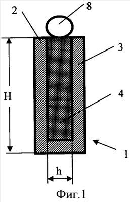 В форме может быть выполнена только одна из противолежащих стенок из материала, смачиваемого пропиточным металлом или сплавом. Наиболее предпочтительным вариантом является выполнение двух противолежащих стенок, например 2 и 3 (фиг.1) из материала, смачиваемого пропиточным металлом или сплавом. В последнем случае можно получать элементы большей толщины. Противолежащие стенки формы могут быть полностью изготовлены из материала, смачиваемого пропиточным металлом или сплавом, либо стенки могут быть изготовлены составными, т.е. стенки могут быть изготовлены из материала, не смачиваемого пропиточным металлом, но снабжены вставками, изготовленными из материала, смачиваемого пропиточным металлом или сплавом. Вместо установки вставок смачиваемый материал может быть нанесен на стенки формы любым известным способом, например напылением, гальваническим наращиванием и т.п.