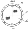 Перед загрузкой в реторту установки для диффузионного покрытия метизов и перед выгрузкой из реторты шихты цилиндрическая емкость центрируется относительно реторты с помощью штифтов, закрепленных на фланце реторты, входящих в пазы 17, выполненных во фланце 15 предложенного устройства, и прикрепляется к фланцу реторты с помощью болтов, для которых на фланце 15 предусмотрены отверстия 16.