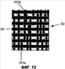 Фиг.10 – схема переплетения пятого варианта изобретения, который очень похож на вариант, показанный на фиг.9. Главное различие между этими двумя сетками заключается в изменении положения основных нитей 5, 6, 9 и 10 в ткацком рисунке.