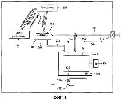 После того как внутренняя температура бака 11 или барабана 12 определена на этапе определения температуры (S600), блок 500 управления выполняет этап сравнения температуры (S200).