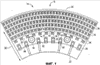 Сегменты 14, 14 плиты прикрепляют к поверхности 16 диска любым удобным или обычным способом, например при помощи болтов (не показаны), проходящих через отверстия 18. В типичном случае один конец болта входит в зацепление с диском 12, 12 , а на другом конце болт имеет головку, упирающуюся в утопленную поверхность в сегментах 14, 14 . Диски 12, 12 , только часть которых показана, имеют центр, вокруг которого вращается диск, и по существу круглую периферию. Сегменты 14, 14 диспергирующей плиты расположены рядом друг с другом на поверхности 16 дисков 12, 12 , формируя по существу кольцевую диспергирующую поверхность 20 , показанную в целом позициями 20, 20 . Поверхность 20 формирует часть диспергирующей зоны 21, когда она находится напротив поверхности 20 диспергирующей плиты, которую несет другой диск.