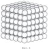 Упаковку (порядок укладывания) с кубическим расположением центров гранул практически осуществить проблематично. Однако характеристики такой упаковки важны для сравнительной оценки других типов упаковки. При реализации упаковки с кубическим расположением центров гранул расстояние между плоскостями центров масс гранул слоев равно среднему диаметру гранулы.