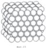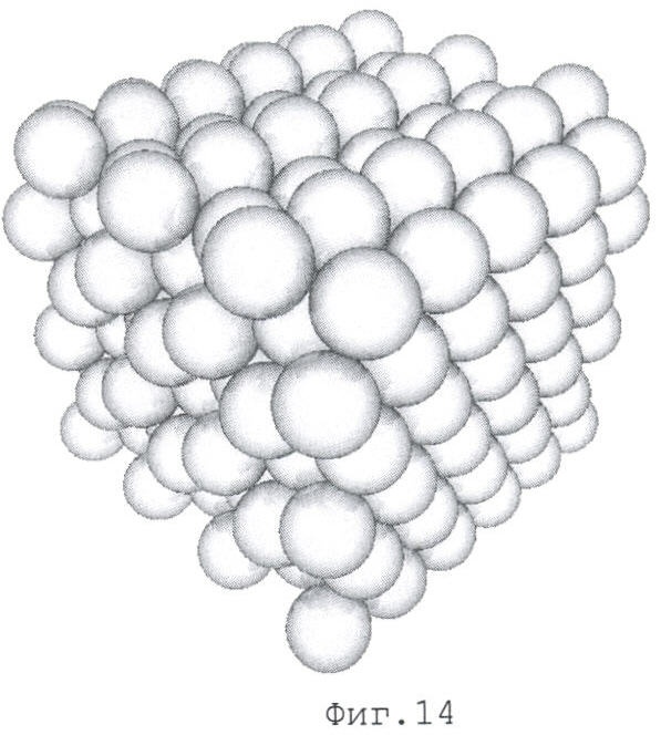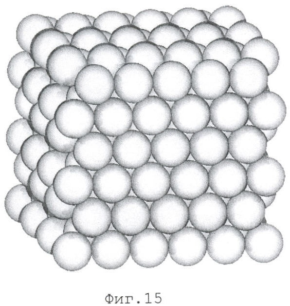 На фиг.1 изображена схема гомогенизации гранул заполнителя при просеивании на ситах. На фиг.2 изображена схема укладки слоя гранул заполнителя в виде, близком к квадратному расположению центров гранул. На фиг.3 изображена схема укладки слоя гранул заполнителя в виде, близком к треугольному расположению центров гранул (равносторонние треугольники) – первый вариант. На фиг.4 изображена схема укладки слоя гранул заполнителя в виде, близком к треугольному расположению центров гранул (равносторонние треугольники) – второй вариант. На фиг.5 изображена схема к определению ряда и слоя гранул. На фиг.6 изображена схема порядка укладывания заполнителя с кубическим расположением центров гранул в параллельной проекции. На фиг.7 изображена схема порядка укладывания заполнителя с кубическим расположением центров гранул в перспективной проекции. На фиг.8 изображена схема порядка укладывания заполнителя «кубический объемно-центрированный» в параллельной проекции так, чтобы виден был весь слой основания. На фиг.9 изображена схема порядка укладывания заполнителя «кубический объемно-центрированный» в перспективной проекции так, чтобы виден был весь слой основания. На фиг.10 изображена схема порядка укладывания заполнителя «кубический объемно-центрированный» в перспективной проекции так, чтобы виден был весь последний слой упаковки (порядка укладывания). На фиг.11 изображена схема порядка укладывания заполнителя «кубический объемно-центрированный» в параллельной проекции при виде со стороны последнего слоя упаковки (порядка укладывания). На на фиг.12 изображена схема порядка укладывания заполнителя «кубический объемно-центрированный» в перспективной проекции при виде со стороны последнего слоя упаковки (порядка укладывания). На фиг.13 изображена схема порядка укладывания заполнителя «гексагональный плотный» в параллельной проекции. На фиг.14 изображена схема порядка укладывания заполнителя «гексагональный плотный» в перспективной проекции. На фиг.15 изображена схема порядка укладывания заполнителя «гексагональный плотный» в параллельной проекции со стороны слоя основания. На фиг.16 изображено фото заполнителя из реальных мелких песков со стороны первого слоя. На фиг.17 изображено фото первого слоя заполнителя из реальных средних песков. На фиг.18 изображено фото заполнителя из реальных частично гомогенизированных отбором на ситах крупных песков со стороны первого слоя. На фиг.19 изображено фото заполнителя из реальных частично гомогенизированных отбором на ситах средних песков со стороны первого слоя. На фиг.20 изображено фото первого слоя заполнителя из искусственных гомогенизированных гранул заполнителя. На фиг.21 изображена сравнительная диаграмма заполнения площади слоем гомогенизированных гранул заполнителя в виде, близком к квадратному расположению центров гранул и в виде, близком к треугольному расположению центров гранул (равносторонние треугольники). На фиг.22 изображена сравнительная диаграмма заполнения объема гомогенизированными гранулами в виде порядка укладывания заполнителя «кубический объемно-центрированный» и в виде кубического расположения центров гранул заполнителя. На фиг.23 изображена сравнительная диаграмма заполнения объема гомогенизированными гранулами в виде порядка укладывания заполн