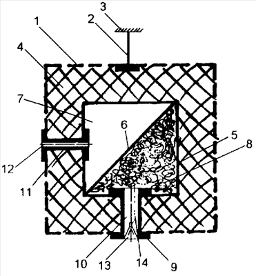 На чертеже представлен фронтальный разрез предлагаемого кубического штучного звукопоглотителя.