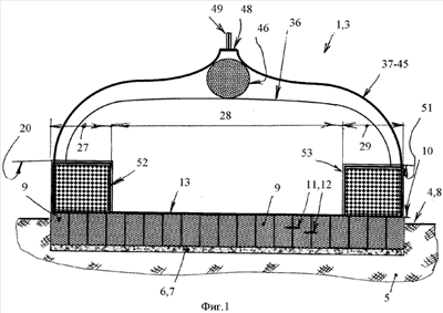 Изобретение относится к сфере отдыха людей и может быть использовано для тренировок гимнастов или для проведения художественных выставок в летнее время, а также для образования непроницаемой зоны для сохранения промышленных и иных видов оборудования.