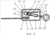 Для предупреждения воздействия на механизм запирания через технологический зазор между входным отверстием 3 и поверхностью отрезка троса производят дополнительное силовое воздействие на ролик 9 через пружину замыкания 8 путем полного сжатия ее витков. Это достигается посредством ввертывания винта 21 за технологический хвостовик 22 в резьбовое отверстие 23. Вращение производят до полного сжатия (соприкосновения) витков пружины замыкания. Таким образом, собранные вместе витки пружины представляют собой жесткое тело, через которое при дальнейшем вращении винта 21 сжатая полностью пружина воздействует на ролик 10, усиливая его взаимодействие с боковой поверхностью отрезка троса.