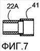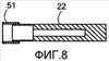 Кроме того, в варианте осуществления на фиг.5 зазор 213 между частью 22 основного шпинделя и промежуточным шпинделем 22A закрывается отдельным кольцом 22B, которое обеспечивает опору, соединяет промежуточный шпиндель с основным шпинделем в его корпусе и защищает второй гибкий элемент 211. Часть основного шпинделя, промежуточный шпиндель, или оба – могут перемещаться внутри кольца 22B. Кольцо необязательно должно быть отдельным элементом. Оно также может быть выполнено за одно целое или с промежуточным шпинделем, или с основным шпинделем. На Фиг.7 изображен вариант осуществления промежуточного шпинделя 22A, в котором кольцо 41 выполнено за одно целое с ним. В этом варианте осуществления часть основного шпинделя может перемещаться в расширенной части 41 кольца. На Фиг.8 изображен вариант осуществления части 22 основного шпинделя, в котором кольцо 51 выполнено за одно целое с ним. В этом варианте осуществления промежуточный шпиндель может перемещаться в расширенной части 51 кольца.