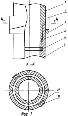 Ширина фиксаторов 10 несколько меньше ширины продольных пазов 9, что обеспечивает их свободное вхождение в продольные пазы 9 даже при некотором их несовмещении.