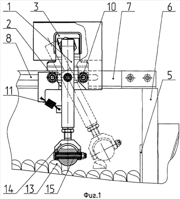 В частном случае контактирующий элемент выполнен в виде вилки, на одном конце которой установлен с возможностью вращения вокруг горизонтальной оси сферический ролик, а на другом выполнена резьба.