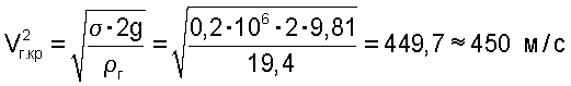 V2 г.кр – критическая скорость движения газа в газоотборнике, м/с.