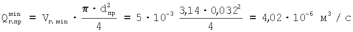 Vг.min – минимальная скорость движения газа, при которой не наблюдается выход микрогранул трассера из потока, м/с, и которая равна 5·10-3 м/с.
