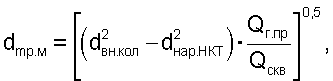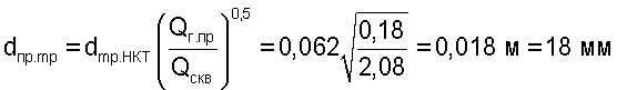 dпр.mp=dНКТ·(Qг.пр/Qскв)0,5,