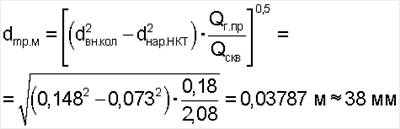 dmp=dвн.НКТ·(Qг.пр/Qскв)0,5,