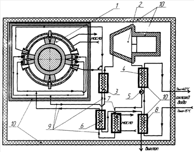 Охлаждающая жидкость поступает в электростанцию снаружи и подается в теплообменник, в другой полости которого походят отработавшие газы, подающиеся сюда из предыдущего теплообменника, отдав тепло, отработавшие газы выбрасываются в атмосферу, а охлаждающая жидкость поступает в конденсатор, где отбирает тепло у отработавшего пара, превращая его в жидкость, из конденсатора нагретая охлаждающая жидкость подается к потребителю.