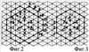 На фиг.1 показана развертка пазовых слоев предлагаемых обмоток двухобмоточного статора при z=126 (k=1), ук=15 для z/2=63 пазов с номерами пазов 1 63 снизу, катушек 1К, 2К, сверху с фазными зонами A-Z-B-X-C-Y слоев для 2р1=12-полюсной обмотки с q’1=7/4 (нечетные катушки), A’-Z’-B’-X’-C’-Y’ для 2р2=14-полюсной обмотки при q’2=3/2 (четные катушки) и сверху показаны лобовые части катушек 1К, 2К; на фиг.2 и 3 по чередованиям фазных зон фиг.1 и треугольной сетке (при ее стороне в две единицы длины) построены многоугольники МДС для 2p1=12 (фиг.2) и 2р2=14 (фиг.3) с нумерацией первых 14 (для q1=z/6p1=7/2) и q2=z/6p2=3 пазовых точек с единичными векторами токов зон А-Z-B-X-C-Y в центре. При k=2 обмотка имеет 2p1=24, 2p2=28 и z=252.