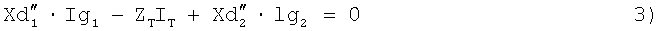 Для симметричного устройства, в котором РА и РВ на фиг.2 и 3 являются симметричными, т.е. Xd”1=Xd”2 и IR1=IR2, уравнения можно упростить следующим образом: