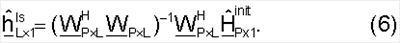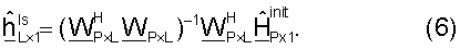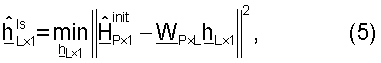 Матрица WPxL содержит P строк матрицы WNxN, соответствующих P контрольным поддиапазонам. Каждая строка матрицы WPxL содержит L элементов, которые являются первыми элементами соответствующей строки матрицы WNxN. Оптимизация в уравнении (5) осуществляется по всем возможным импульсным характеристикам канала hLx1. Среднеквадратическая оценка импульсной характеристики канала равна гипотетической импульсной характеристике радиоканала hLx1, что приводит к минимальной среднеквадратической ошибке между начальной оценкой импульсной характеристики и частотным откликом, соответствующим hLx1, что задается формулой WPxLhLx1.