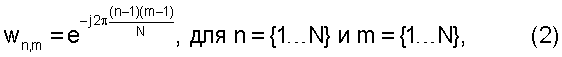 ДПФ матрица WNxN определяется так, что (n,m)-й ввод данных задается следующим образом: