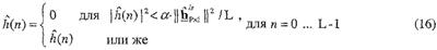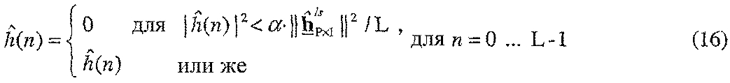 В другой схеме выбора порога выбор порога выполняется на всех P элементах вектора  (то есть без усечения), используя один порог подобно тому, как показано в уравнении (16). Еще в одной схеме выбора порога выбор порога выполняется на всех P элементах вектора  , используя многочисленные пороги. Например, первый порог может быть использован для первых L элементов вектора  , и второй порог может быть использован для последних P-L элементов вектора  . Второй порог может устанавливаться более низким, чем первый порог. Еще в одной схеме выбора порога выбор порога выполняется только на последних P-L элементах вектора  и не на первых L элементах. Выбор порога может выполняться другими способами.