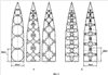 6. По полученным шаблонам выкроены элементы каждого размера количеством N=13, а также верхушка. Соединение элементов производилось встык через соединительные отверстия по горизонтальным рядам, начиная от верхушки и до нижнего ряда (фото).