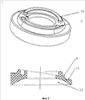 На фиг.3 показана конструкция фигурного кольца 7, образующего в сборке желоб направляющей 5. На поверхности 8 кольца 7 выполнены корреспондирующиеся элементы соединения, дуговой паз 9 и дуговой выступ 10. По периферии поверхности проходит дугообразная выемка 11, которая при соединении колец, образует С-образный желоб-направляющую 5, который может быть ориентирован как горизонтально, так и под углом с оси кольца. Предусмотрено также посадочное углубление 12.