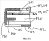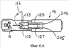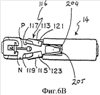 Из фиг.5А и 5В видно, что зажим 112 может дополнительно содержать два промежуточных канала 208, выполненных с возможностью легкого приспособления для помещения в них ножек 125, 127 оконечного элемента каждой половины узла 116, посредством чего ножки осуществляют перемещение скольжения в промежуточных каналах 208 при скольжении узла 116 в зажим 112 и из него.