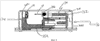 Верхний упор-ограничитель 30 имеет L-образную форму (в поперечном сечении) для размещения подвижной части 40 гнезда 74, предусмотренного для картриджа 14 в пистолете 12. Подвижная часть 40 имеет свисающий выступ 42, который вставлен в паз 44, выполненный между верхним упором-ограничителем 30 и поршнем 22. Язычок 46 выступает вперед в поперечном направлении от поршня 22 и служит, как это будет видно, дополнительным ограничителем перемещения. Задний упор 48 гнезда служит для того, чтобы обеспечить поддерживающую опору и упор задней части картриджа 14 после того, как он вставлен в пистолет 12, а более точно, в гнездо 74 пистолета.