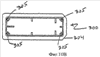 Нижняя часть коробки 16 герметично закрыта крышкой 310, которая показана на виде сверху и в вертикальной проекции соответственно на фиг.11А и 11В. Крышка 310 защелкивается поверх фланца 304, обеспечивая защиту бумажной подложки, используемой для герметизации адаптирующейся верхней части 300. Крышка 310 снабжена штифтами 311, которые могут входить в соответствующие отверстия 305 адаптирующейся верхней части другой упаковочной коробки. Таким образом, эта конструкция со штифтами и отверстиями может быть использована для вертикальной укладки одной упаковочной коробки поверх другой.