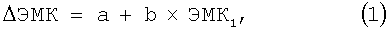 3. По оцененным коэффициентам линейного уравнения первой степени (1) отыскивают значение ЭМК1, для которого разность между нечетным и четным измерением (ni=1-ni=2) ЭМК=0, по уравнению –