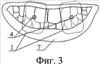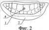 На фиг.1 представлена схема прибора с установленным в преддверии полости рта датчиком. На фиг.2 – схема датчика прибора, установленного в преддверии полости рта для определения степени воздействия мышц, окружающих ротовую щель, на ряд передних зубов. На фиг.3 – схема датчиков двух приборов, установленных в преддверии полости рта для определения степени воздействия мышц, окружающих ротовую щель, на отдельные области зубного ряда.