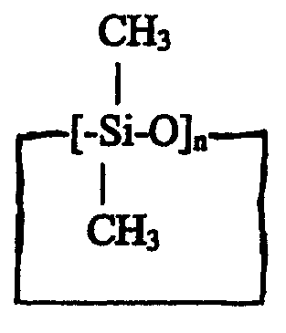 Формула II где n равно целому числу от 4 до 6, в частности, 5-6. Они включают тетрамер (D4), пентамер (D5) и гексамер (D6), и смеси любых двух или трех из них. Например, текучие среды DC-245 и DC-345 от компании Dow Corning Corporation (Midland, Michigan) представляют собой типы циклометиконов, которые могут быть использованы. Следует отметить, что для целей настоящего изобретения циклометиконы не рассматривают как силиконовые смягчающие вещества. Подходящие силиконовые поверхностно-активные вещества включают силиконполиглюкозиды (например, октилдиметиконэтоксиглюкозид) и силиконсополиолы, имеющие величину ГЛБ (гидрофильно-липофильный баланс) меньше или равную 8. Величину ГЛБ можно измерить множеством способов, таких как описаны в общепринятых справочниках, или найти в табличных данных, где перечислены эти величины. Величины ГЛБ являются понятием, хорошо известным в данной области, например как описано в патенте США Силиконсополиол (главным образом, диметиконсополиол) может быть использован в количестве 0,6-0,9% мас. (из расчета на активные вещества), в частности 0,6-0,8. Обычно силиконсополиолы, используемые в настоящем изобретении, включают сополиолы нижеследующих формул III и IV. Вещества, соответствующие формуле III, могут быть представлены: (R10)3SiO2-[(R11)-SiO2]x-[Si(R12)(Rb-0-(C2H40)p-(C3H60)s-Rc)O]y-Si-R13)3 Формула III где каждый из R10, R11, R12 и R13 могут быть одинаковыми или различными и каждый независимо выбирают из группы, состоящей из Cl-C6алкила; Rb представляет собой радикал -СmН2m-; Rс представляет собой концевой радикал, который может быть водородом, алкильной группой, содержащей от одного до шести углеродных атомов, ацильной группой, такой как сложный эфир с концевой алкильной группой из 1-4 углеродных атомов, или арильной группой, такой как фенил; m принимает значения от двух до восьми; p и s принимают такие значения, что оксиалкиленовый сегмент -(С2Н4О)р(С3Н6О)s– имеет молекулярную массу в диапазоне от 200 до 5000; сегмент предпочтительно имеет от пятидесяти до сотни мольных процентов оксиэтиленовых элементарных звеньев -(С2Н4О)р– и от одного до пятидесяти мольных процентов оксипропиленовых элементарных звеньев -(С3Н6О)s-; х принимает значения от 8 до 400; и у принимает значения от 2 до 40. Предпочтительно, каждый из R10, R11, R12 и R13 представляет собой метильную группу; Rc является H; m предпочтительно принимает значения три или четыре, тем самым группа Rb, наиболее предпочтительно, является радикалом -(СН2)3-; и значения p и s являются такими, чтобы молекулярная масса оксиалкиленового сегмента -(С2Н4О)р(С3Н6О)s– составляла приблизительно от 1000 до 3000. Наиболее предпочтительно, чтобы p и s, каждый, принимал значение приблизительно от 18 до 28. Второй силоксановый простой полиэфир (сополиол) имеет формулу IV: ((R10)3SiO-[(R11)2-SiO]x-[Si(R12)(Rb-0-(C2H40)pRc)O]y -Si-(R13)3 формула IV где p принимает значения от 6 до 10, х принимает значения от 6 до 100, y принимает значения от 1 до 20, и другие фрагменты имеют значения, определенные в формуле III. Следует понимать, что в обеих формулах I и II, показанных выше, силоксан/оксиалкиленовые сополимеры по настоящему изобретению могут в альтернативных вариантах осуществления принимать форму простых полиэфиров с блокированными концевыми группами, в которых связывающая группа Rb, оксиалкиленовые сегменты и концевой радикал Rс занимают положения, соединенные с концами силоксановой цепи, и не связаны с атомом кремния в силоксано