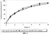 – Продолжительность измерения: Аликвоты раствора высвобождения собирали через 1, 2, 3, 4, 6, 8 и 10 ч, фильтровали через мембрану 0,45 мкм и использовали в качестве исследуемых образцов. После каждого измерения раствора высвобождения систему испытания на высвобождение повторно заполняли равным количеством свежеприготовленного раствора высвобождения.