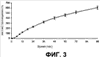 Фиг.4 – это кривая градиента Фиг.1 с течением времени, то есть изображение потока во времени. Фиг.4 показывает экспериментальную и смоделированную in vitro проницаемость гранисетрона через кожу человека из DT 2287 адгезива (мкг/см2/час). Профиль этого потока был смоделирован и использован как исходные данные для простой фармакокинетической модели (основанной на PK данных, полученных от пациентов) для предсказания действия in vivo пластыря 10 см2, как показано на Фиг.5.