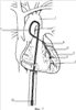 Схематичный пример реваскуляризации миокарда с использованием коронарного катетера показан на фиг.2-5, на которых изображен макет сердца со стенозами ветвей (8) левой венечной артерии (4), в устье которой из бедренной артерии через интродьюсер (10), минуя аорту (1), проводят и устанавливают проводниковый катетер (3) (фиг.2). Через последний проводят коронарный катетер (6) в левую коронарную артерию (4), в которой закрепляют с помощью баллона (2) (фиг.3). Далее из дистального конца коронарного катетера (6) выводят под определенным углом стержневой электрод (5) и, перфорируя им заднюю стенку венечной артерии (4) и миокард левого желудочка (7), ведут в нужном направлении до зоны ишемии в обход участкам стеноза ветвей (8) левой коронарной артерии (4). Затем в месте перфорации прожигают канал нужного диаметра, пропуская по стержневому электроду (5) электрический ток высокой силы и частоты. После неоднократного проведения стержневого электрода (5), осуществления прожига и втягивания стержневого электрода (5) обратно внутрь коронарного катетера (6) в толще миокарда левого желудочка (7) появляются тонкие слепые каналы (9), связанные с просветом левой коронарной артерии (4), по диаметру несколько больше, чем стержневой электрод (5) (фиг.4). Реваскуляризация заканчивается созданием сквозных каналов (11), проникающих из просвета левой коронарной артерии (4) в полость левого желудочка (7) (фиг.5). Из медикаментозных средств на различных этапах операции, в пред- и послеоперационном периоде используют антиагреганты (аспирин, тиклид), прямые антикоагулянты (гепарин) и вазодилататоры (нитроглицерин, нифедипин, коринфар). За 1-2 суток до операции пациенту назначают внутрь 125 мг аспирина или 250 мг тиклида в сутки и коринфар 40 мг в сутки. После установки интродьюсера внутривенно (болюсом) или внутриартериально вводят гепарин суммарно в дозе 15000-20000 ЕД, иногда добавляя внутривенную инфузию (в течение всего вмешательства) физиологического раствора с гепарином из расчета 5000 ЕД гепарина в час. Затем гепарин вводят уже интракоронарно по системе трубок и соединений, проксимально связанных с проводниковым катетером. Интракоронарно гепарин вводят сразу после создания каждого интро- и трансмиокардиального канала медленно (в течение 1-2 минут) в дозе 200-300 ЕД после предварительного сдувания баллона, а также в конце вмешательства после удаления коронарного катетера в дозе 2000 ЕД в течение 30 минут. Данный вид инфузий проводят для предотвращения тромбирования каналов на ранних этапах неоангиогенеза. Манипуляции с гепарином проводят под контролем свертываемости крови (анализы берутся периодически во время операции). Из вазодилататоров интракоронарно чаще применяют нитроглицерин, который вводят до проведения коронарного катетера в дозе 240 мг для профилактики спазматических реакций (иногда для этих целей используют нифедипин). В течение первых суток после операции (до удаления интродьсера) внутривенно проводят инфузию гепарина, растворенного в физиологическом растворе, из расчета 1000 ЕД в час под контролем свертываемости крови, который проводится каждые 45-60 минут, возобновляют прием коринфара 40 внутрь в течение 3-5 суток и назначают внутрь аспирин 125 мг либо тиклид 250 мг на 6 месяцев.