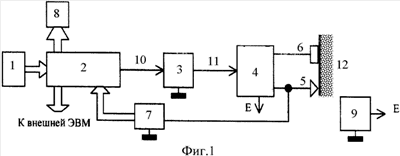 Параметры электрических колебаний в контуре будут с высокой точностью отражать биохимические процессы и физиологическое состояние подэлектродных тканевых структур, т.к. активная составляющая импеданса этих структур характеризует кровенаполнение и полную проводимость межтканевой среды, а емкостная составляющая – клеточную и межклеточную поляризацию. При дисбалансе биохимических процессов под действием стимулирующего сигнала будут изменяться как активная, так и реактивная составляющие импеданса подэлектродных тканевых структур. В свою очередь эти изменения вызывают изменение параметров свободных электрических колебаний в колебательном контуре, образованном последовательным соединением индуктивности катушки индуктивности 4 и емкостной составляющей импеданса межэлектродной ткани 12. По параметрам этих колебаний можно судить о реакции организма на стимулирующее воздействие. Когда достигается баланс биохимических процессов, стимулирующее воздействие перестает оказывать влияние на величину импеданса подэлектродных тканевых структур, и оно должно быть прекращено, т.к. дальнейшее стимулирующее воздействие бесполезно и только удлиняет время лечебной процедуры, что может привести к отрицательному результату. В блоке 7 (фиг.1) осуществляется анализ параметров электростимулирующего воздействия и определяется их изменение от предыдущего к последующему. Когда эти изменения снизятся до порога чувствительности блока 7, принимается решение об отсутствии реакции организма на электростимулирующее воздействие, а на блок индикации 8 из микропроцессора 2 выдается сигнал об отсутствии реакции организма на стимулирующее воздействие и необходимости окончания электростимулирующего воздействия на выбранный участок кожной поверхности.