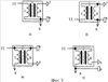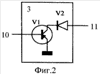 На фиг.1 показана обобщенная блочная схема электронейроадаптивного стимулятора, на которой цифрами пронумерованы: 1 – панель управления, 2 – микропроцессор, 3 – электронный ключ, 4 – двухсекционная высокодобротная катушка индуктивности, 5 – первый электрод, 6 – второй электрод, 7 – блок анализа сигнала обратной связи, 8 – блок индикации, 9 – источник питания, 10 – цепь управления электронным ключом, 11 – цепь подключения электронного ключа к двухсекционной высокодобротной катушке индуктивности, 12 – межэлектродная ткань (подэлектродные тканевые структуры). На фиг.2 приведена возможная электрическая схема электронного ключа, на фиг 3а г – возможные варианты включения секций двухсекционной (I – секция с меньшим количеством витков, II -секция с большим количеством витков) высокодобротной катушки индуктивности 4 (см., например патенты Российской Федерации 2068277, МПК6 A61N 1/36, публ. 1996 г., 2162353, МПК7 A61N 1/36, А61Н 39/00, публ. 2001 г.). В качестве электростимулирующего сигнала используют электрические колебания, возникающие в колебательном контуре, образованном цепью: первый электрод 5 – секция II с большим количеством витков катушки индуктивности 4 – второй электрод 6 – межэлектродная ткань 12 – первый электрод 5, при этом насыщение (дозирование насыщением) электромагнитной энергией катушки индуктивности 4 коррелируют со значением импеданса подэлектродных тканевых структур 12. Это реализуется следующим образом (см. фиг.1). Электроды 5 и 6 размещаются на поверхности кожи в акупунктурных точках или проекционных зонах внутренних органов, например, в зоне спинальной рефлекторной дуги на задней, средней или боковой линии или в зоне проекции исследуемого органа. Степень прижатия электродов к кожному покрову межэлектродной ткани 12 не имеет существенного значения. Влажность кожного покрова тоже, нельзя только допускать, чтобы кожа была покрыта сплошным слоем пота, то есть перед наложением электродов достаточно вытереть кожу сухой или слегка влажной тканью. Двухсекционная высокодобротная катушка индуктивности 4 имеет добротность 100 1000, индуктивность в пределах 0,1 2,0 Гн и отношение количества витков секции I к количеству витков секции II – 0,1 0,3 к 1,0. В исходном положении электронный ключ 3 заперт. При подаче на его вход открывающего импульса через секцию I начинает протекать ток, насыщающий катушку индуктивности 4 электромагнитной энергией, величина которой пропорциональна напряжению источника питания 9 и зависит от длительности открывающего импульса на входе электронного ключа 3.
