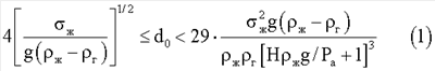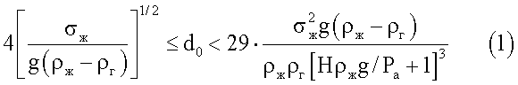 3, 1968) скорость всплытия пузырей составляет в среднем uпуз 0,23 м/с при dпуз 2 мм. Расчеты показывают, что оптимальный диаметр отверстий барботера d0=3 мм, а расстояние между отверстиями L=9 мм (см. патент РФ 2126702 А62С 3/06).