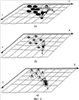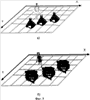 Далее присваивают каждому сегменту координаты на проецируемой поверхности в заданной системе координат, например декартовой. Так, например, при использовании в качестве закона сегментирования матрицы квадратов р·k координаты всех точек видеоизображения i, j-го сегмента видеоизображения (где i=1,2 р, j=1,2 k) будут записаны как Xi,j, Yi,j (см. фиг.2а).