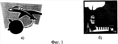 Структура проецируемого видеоизображения может быть различная. Это могут быть, например, логотип фирмы (см. фиг.1а), пейзаж (см. фиг.1б).