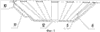 1. Контактное устройство для тепломассообменных аппаратов, включающее цилиндрический корпус, центральную переливную трубу, снабженную стаканом-гидрозатвором, вихревую тарелку, выполненную из листа, на которой радиально выполнены просечки с отогнутыми вверх и вниз краями с образованием наклонных однонаправленных каналов для прохода газа или пара и придания двухфазной смеси на тарелке вращательного движения в одном направлении, отличающееся тем, что вихревая тарелка состоит из двух плотно прижатых друг к другу профилированных листов, повернутых относительно друг друга на величину прорези, на которых выполнены просечки в форме трапеции, сужающейся к центру, на основании которой на верхнем листе выполнены прорези, причем боковая кромка каждой просечки со стороны размещения прорезей верхнего листа пропущена под кромку трапеции нижнего листа, отношение суммарной площади Sг каналов для прохода газа (пара) к площади сечения вихревой тарелки Sт выполнено равным 0,008-0,099, отношение длины прорези L к длине дуги основания просечки L1 равно L/L1=0,1-0,4, при этом центральная переливная труба снабжена устройством для отвода жидкости из вращающегося газожидкостного слоя в ее полость.