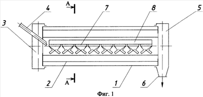 На фиг.1 показан барабанный смеситель с предлагаемой насадкой, на фиг.2 – разрез А-А на фиг.1.
