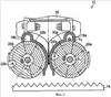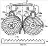 Барабаны могут вращаться прерывисто, но наиболее предпочтительно непрерывно, и барабаны одной партии вращаются в направлении, противоположном направлению другой партии.